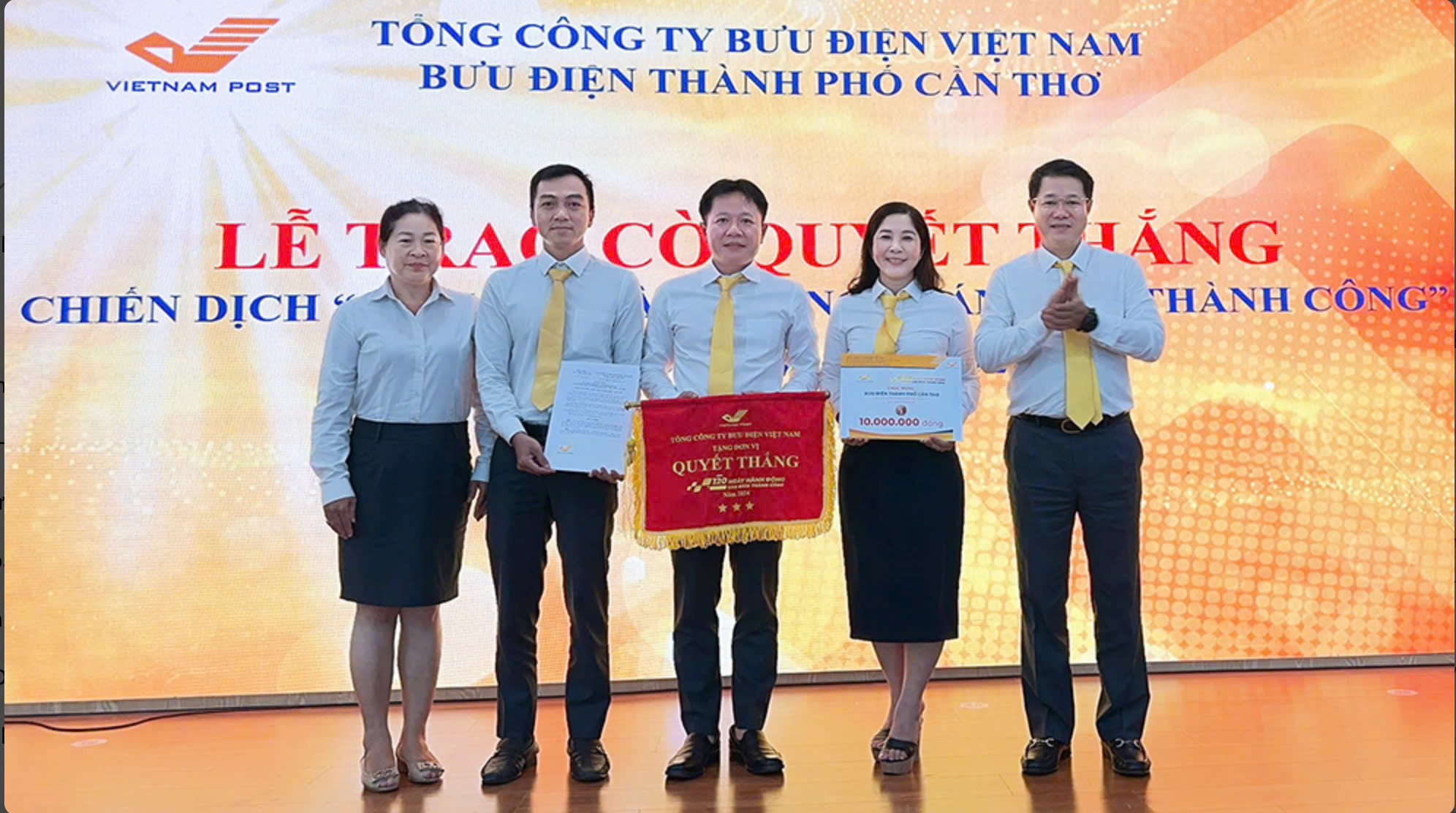 Bưu điện thành phố Cần Thơ nhận Cờ luân lưu Quyết thắng trong thực hiện Chiến dịch “120 ngày hành động – Cán đích thành công”